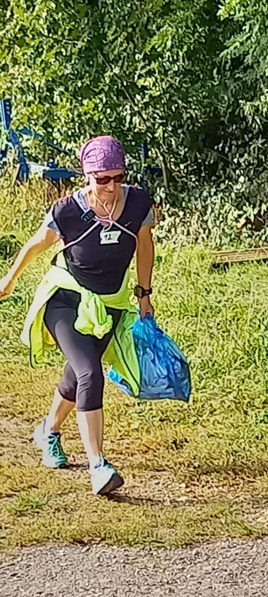 - unsere "Müllsack-Läuferin" Gabi, die auf der Strecke diversen Müll einsammelte und so zu einer sauberen Natur beitrug