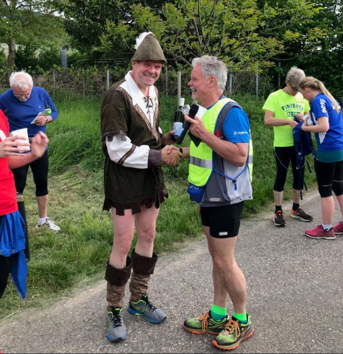 Der einzige verkleidete Läufer - in Robin Hood Kostüm - konnte sich zur Belohnung über eine Flasche Wein freuen. Hier ist meine Erwartung groß, dass im nächsten Jahr weitere mutige Verkleidungsläuferinnen und -läufer mit großem Spaß dabei sein werden.